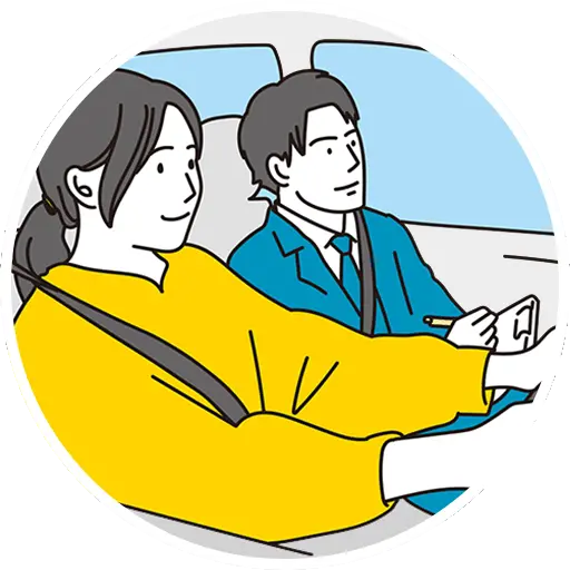 経験豊富なインストラクターが同乗し、運転のコツや注意点を丁寧に指導します。運転スキルや目標に合わせてカリキュラムを調整しながら進めるため、 安心して学べます。